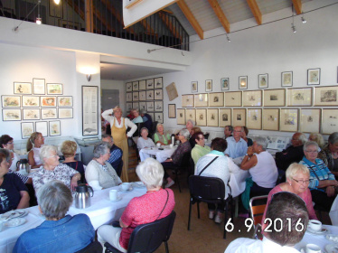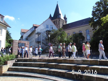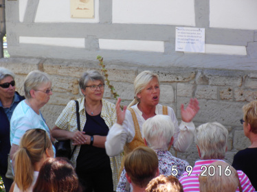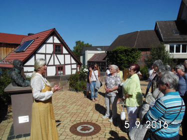 Ein kurzweiliger Spaziergang im Märchenviertel Niederzwehren führt die Gäste nicht nur durch das romantische, uralte Fachwerkdorf, sondern hinauf bis zum Dorothea Viehmann Platz, liebevoll gestaltet mit Kunst-Kanaldeckeln, Denkmal und Wunschtor. Dann geht es weiter in die Märchenwache nach Breitenbach, wo bei Kaffee und Kuchen von den Märchenzuträgern Johann Friedrich Krause und der jungen Marie Hassenpflug erzählt wird. Zum Schluss spielt Andrea C. Ortolano noch ein Grimm’sches Märchen, sehr zur Erheiterung der Gäste.